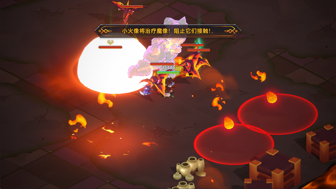 (5) 出现火泡泡的时候,调整身位优先处理火泡泡,阻止boss回血,或把boss从火泡泡身边拉走