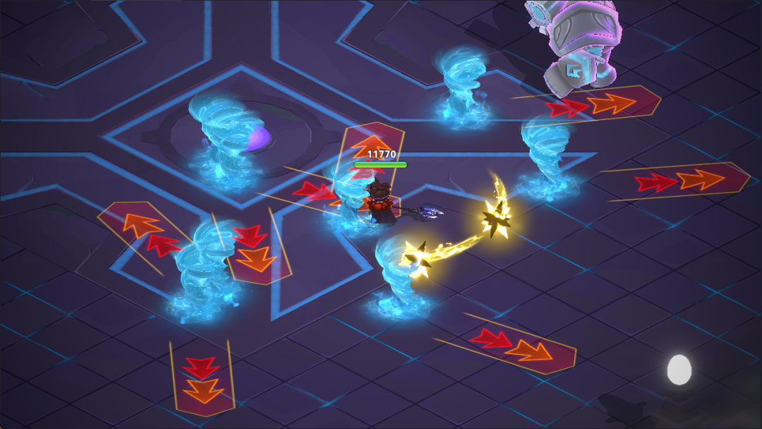 自身开始旋转,对周围造成高额伤害,并将玩家不停吸向自己。