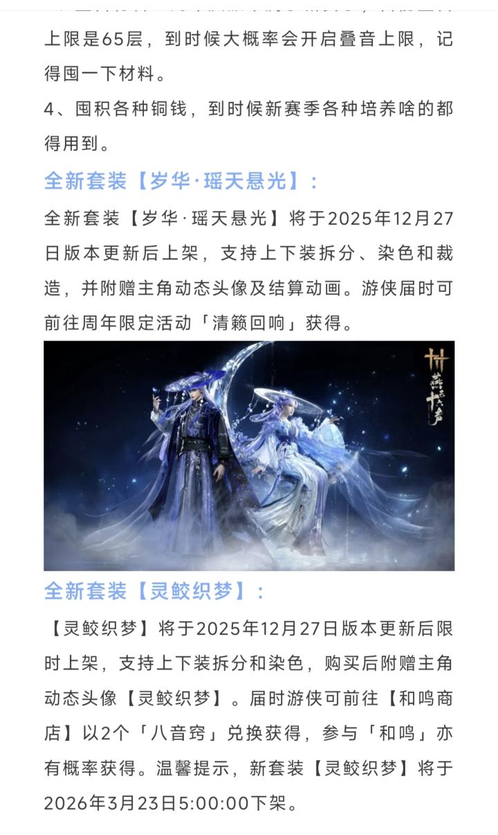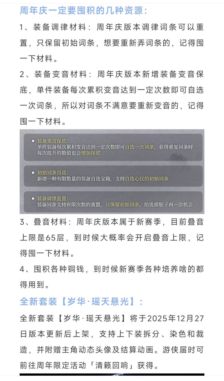 燕云十六声周年庆必须预留的几种资源,首充双倍重置,累充奖励爆料,充值返利限时活动,全新套装【瑶天悬光】