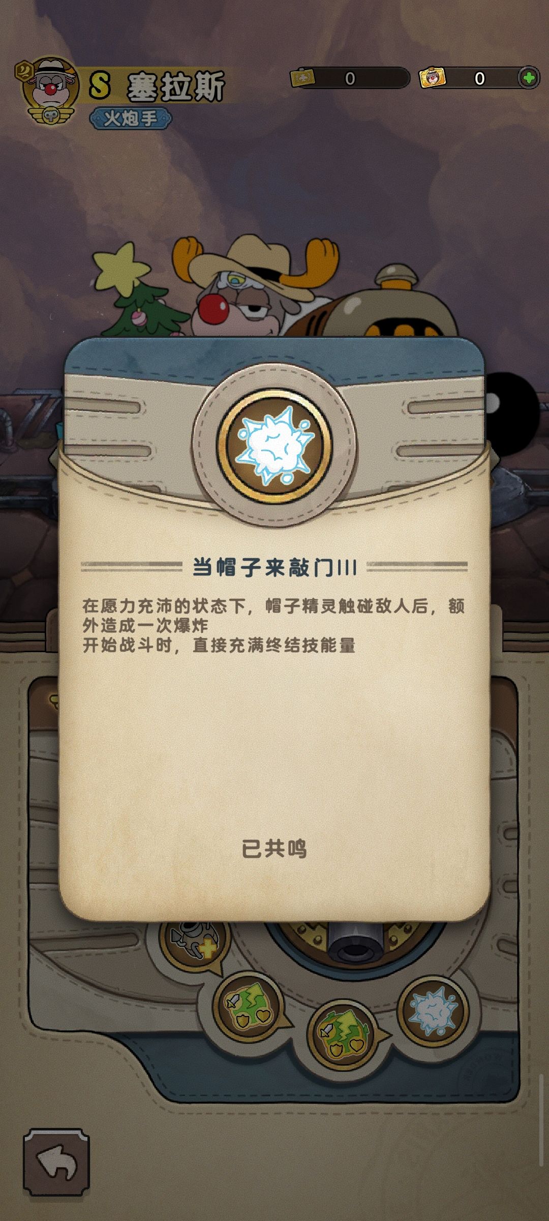 当帽子来敲门3 :在愿力充沛的状态下,帽子精灵触碰敌人后,额外造成一次爆炸;开始战斗时,直接充满终结技能量。