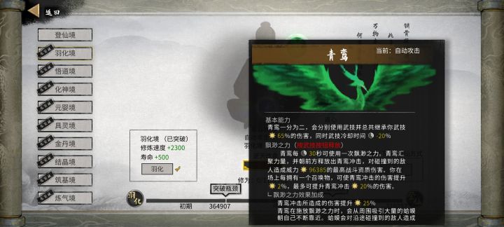 2.羽化:火剑首选青鸾,次选凤凰。不断武技,只要第一关不是青鸾后面就能选青鸾。