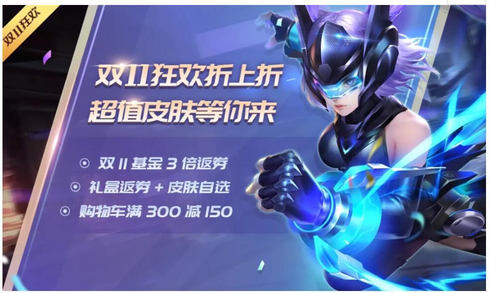1. 双11折上折:直购30元双11基金享3倍返利;双11礼盒返券+史诗自选皮肤;购物车满减5折起;累计胜利得钻石皮肤打折卡。