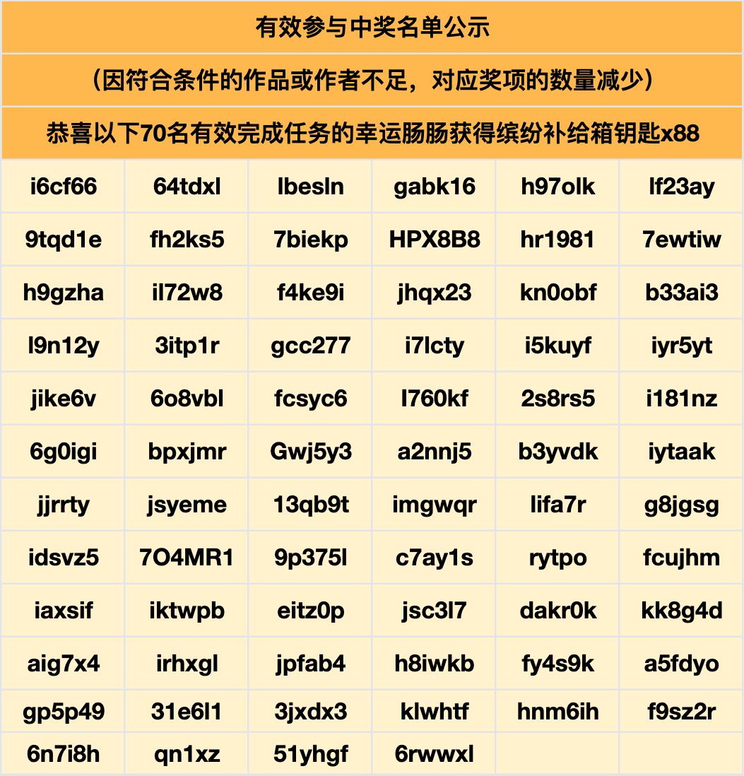 随机抽取88位有效参与的肠肠获得「缤纷补给箱钥匙x88」