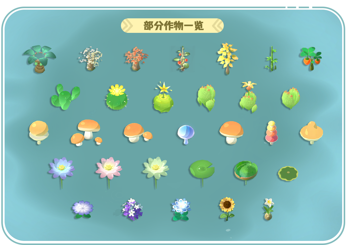 小岛上有多种具备独特特性的作物,能让你自由种植