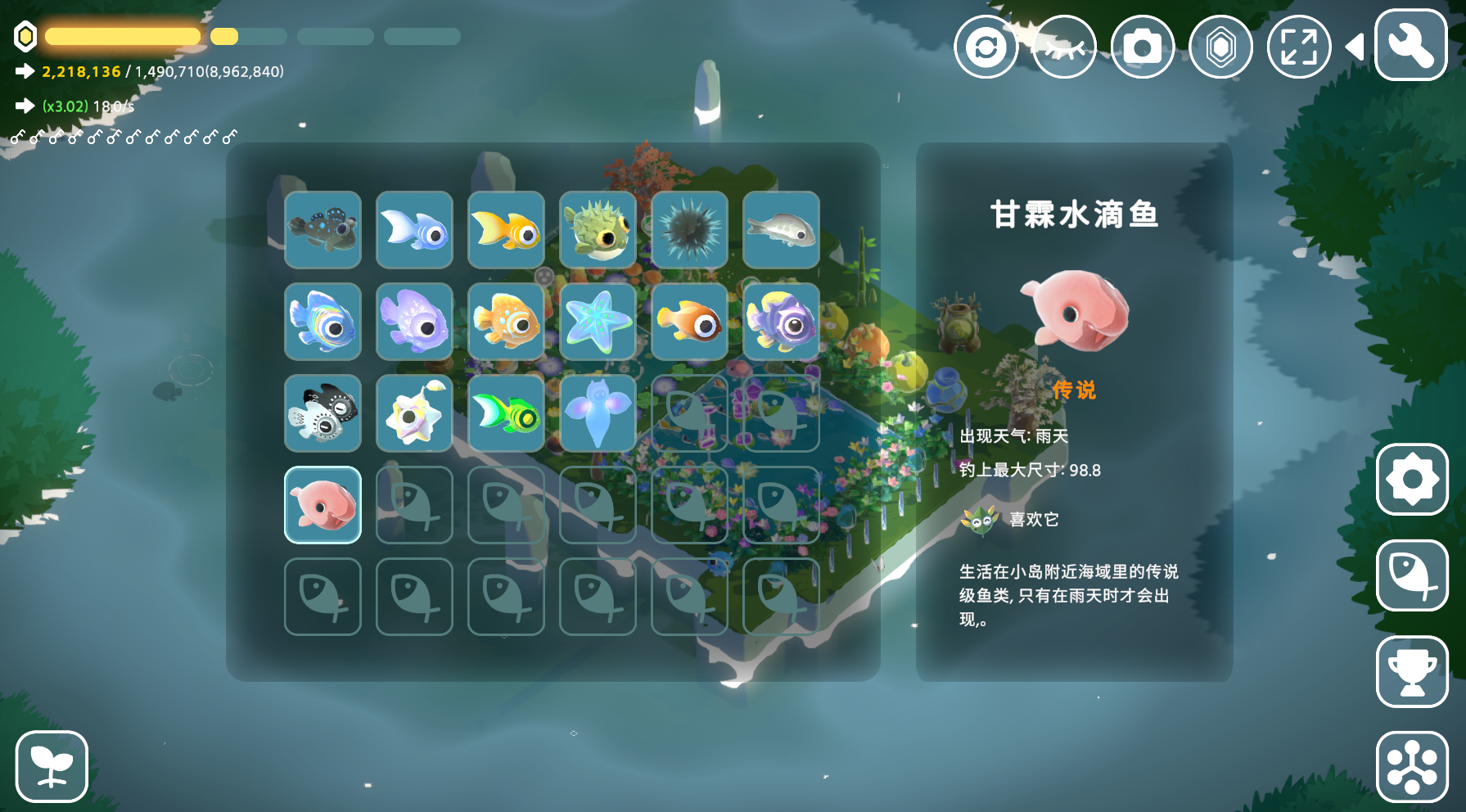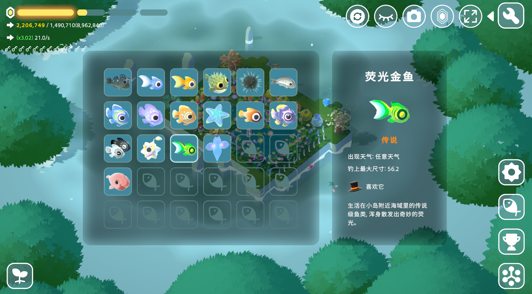 在岛屿周围悠闲的垂钓,收集各种鱼类,慢慢地你觉得自己的手感越发火热🔥