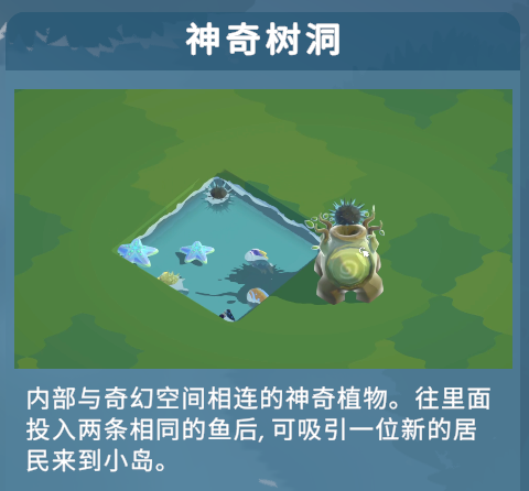 除了岛屿的原住民(开头那只一看就很聪明的蓝色蘑菇精灵)外,还可以通过【树洞】招募新的居民来岛上旅居