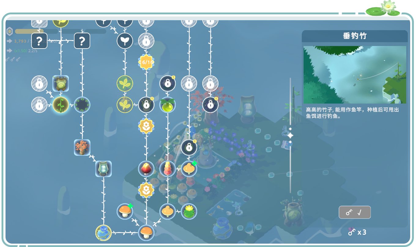 轻点几下鼠标,你就可以在岛上摆放各种作物来收获水晶💎