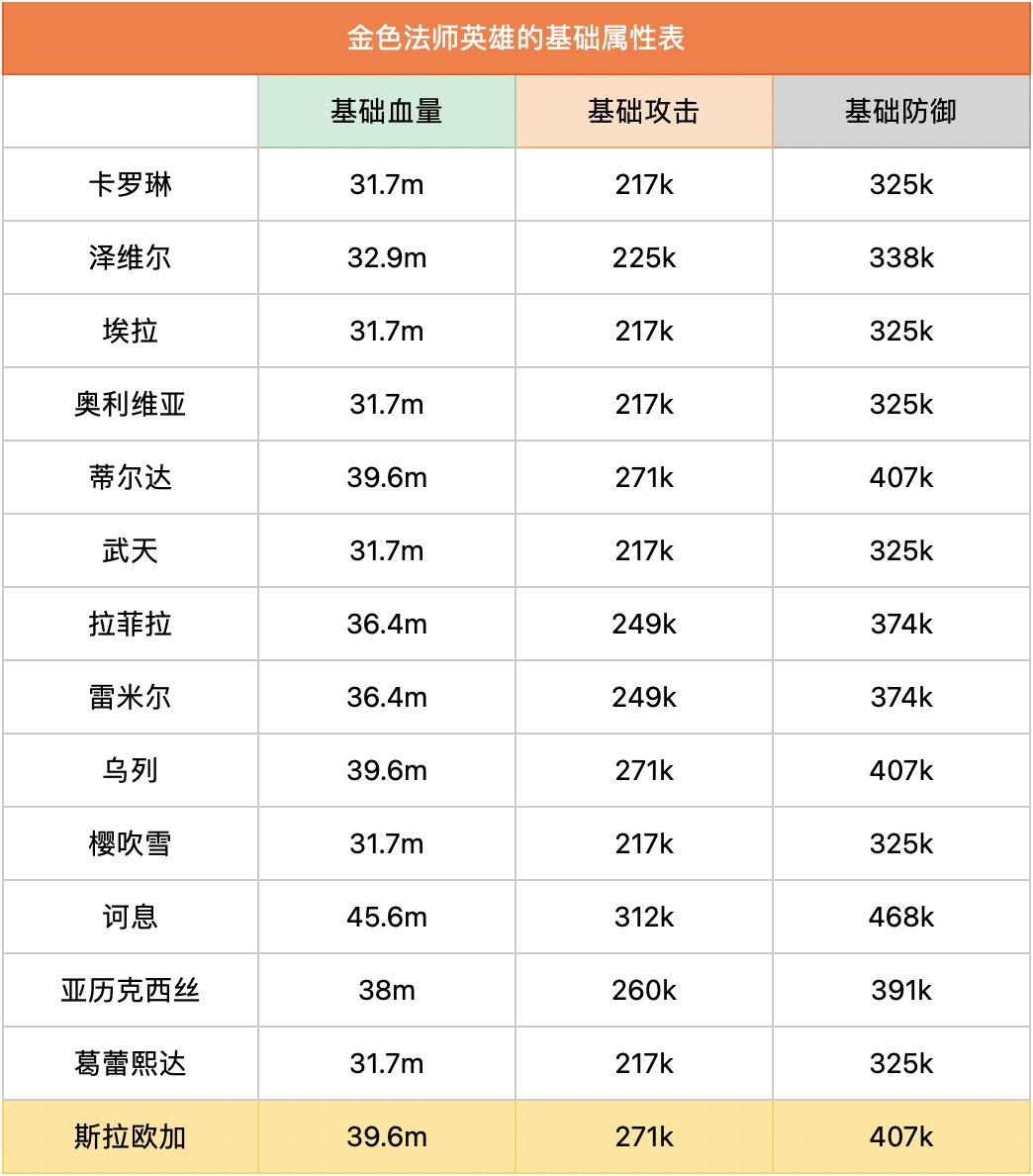 法师系基础属性一览表