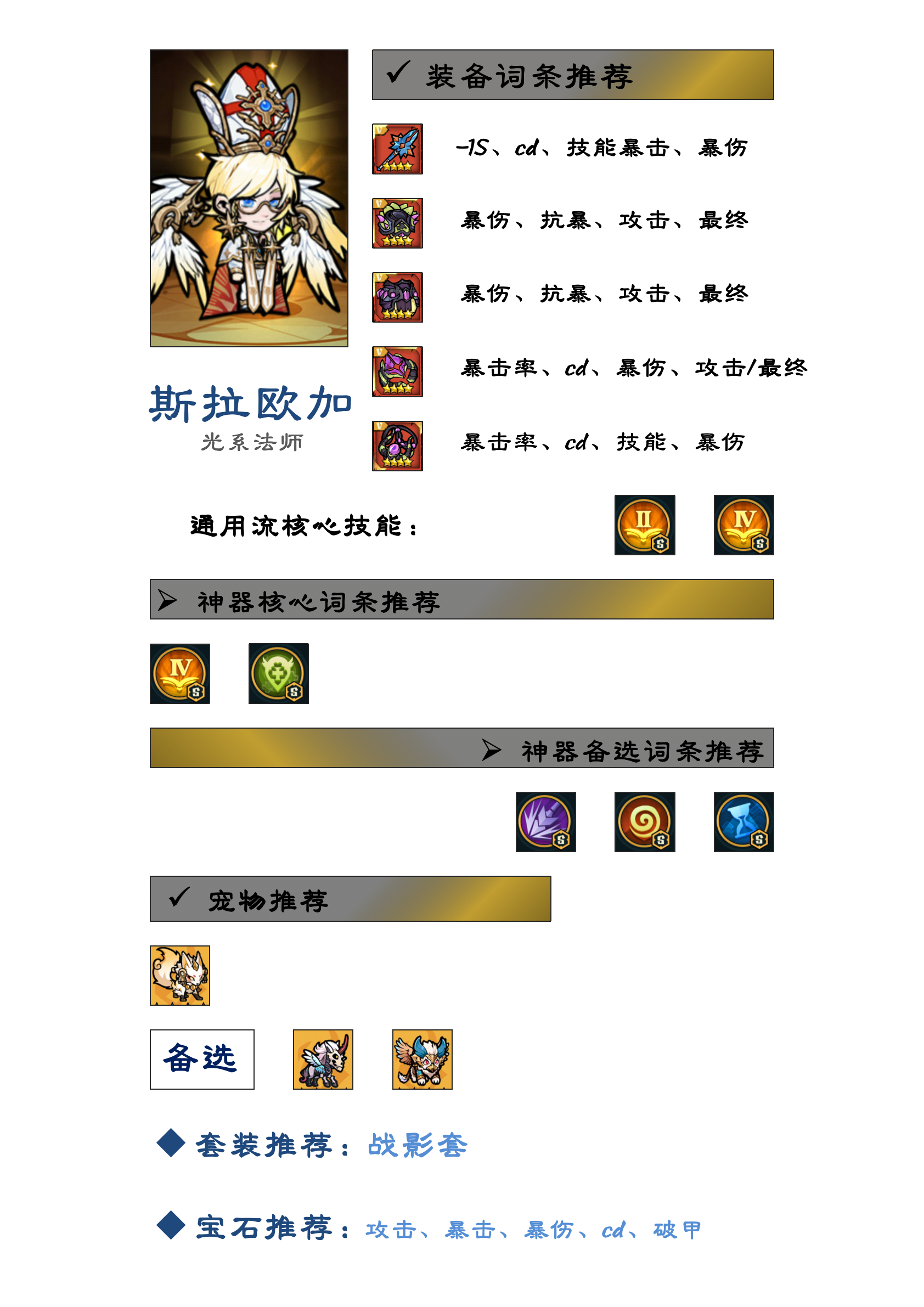 - 暴击率计算:自身5%+神殿15%+宝石20%+装备最高40%+套装20%+领地战称号5%+20级觉醒10%=115%,也就是说要达成最高5%的cd减免,还需要宠物或者暴击龙魂来提供