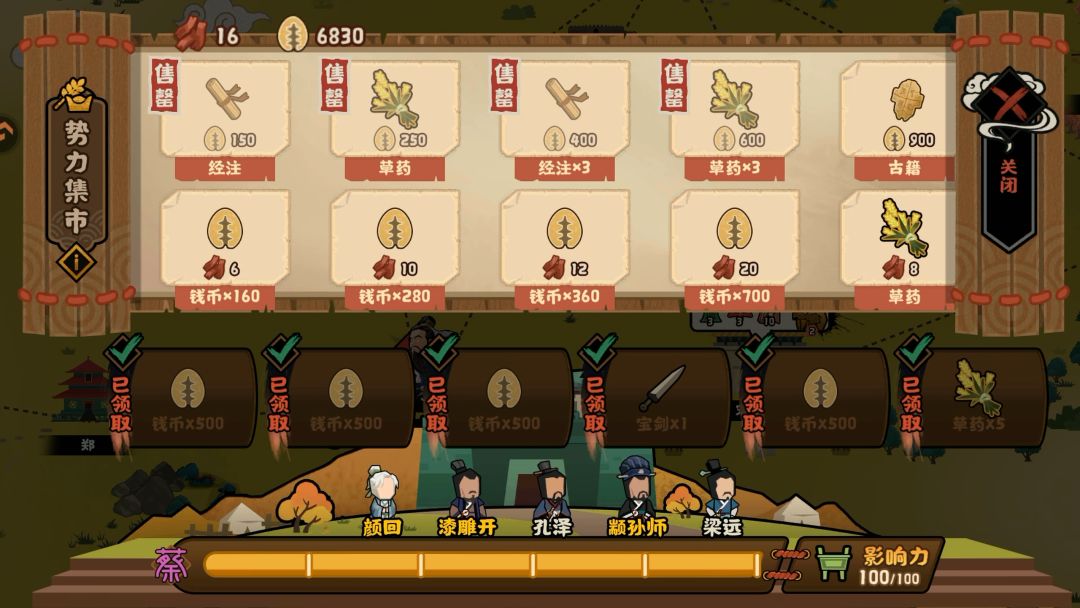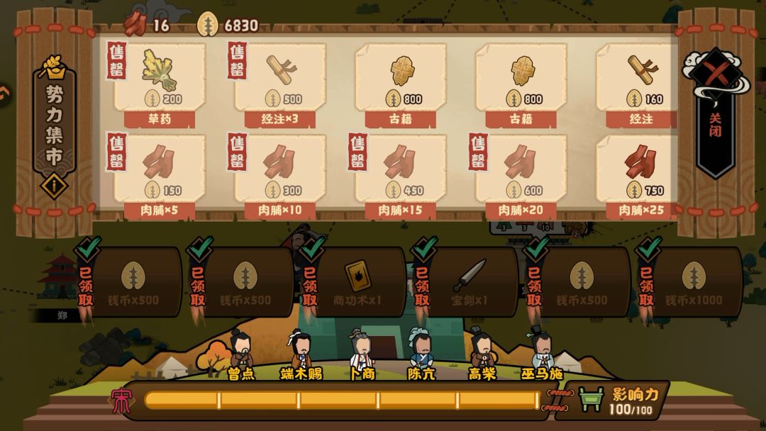还需要注意的是宋国和蔡国的集市需要100影响力才能解锁最后一列,这两个国家除了挑战可以获得30影响力以外、还有任务也可以获得30影响力,这样只要再用弟子出仕获得40影响力就够了。