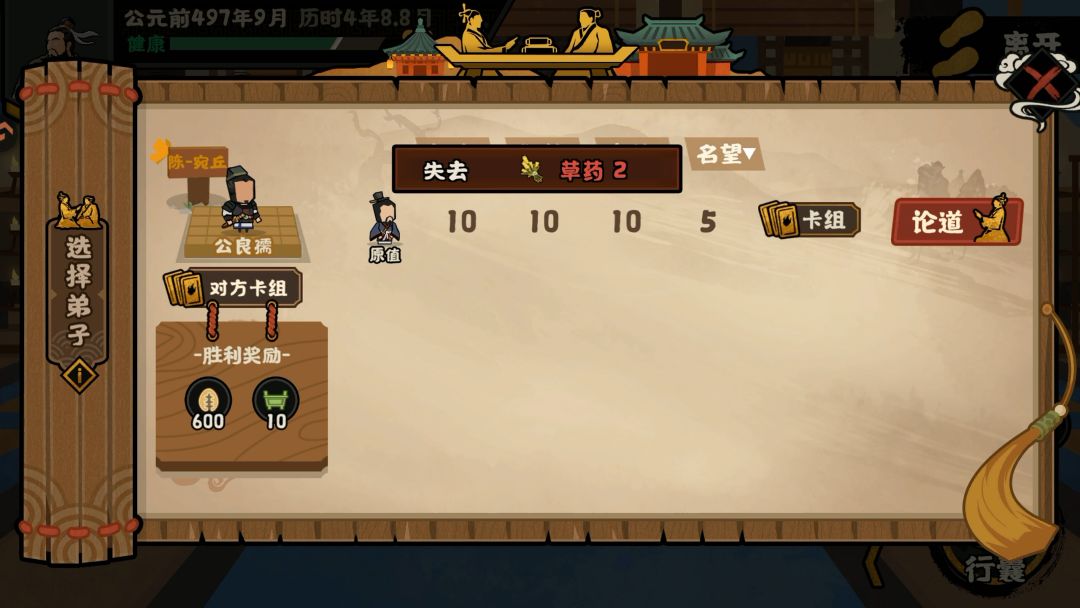 孔子传中隐藏着一个可以无限刷资源的方法,不论是钱币、肉脯、经注等,都可以无限获取。有了钱币自然是想买啥就买啥。有了肉脯你就可以在地图上来回闲逛,刷新各势力的出仕需求获得影响力。有了经注你就可以招收弟子传道之后,再用经注升级获得卡牌提升卡组纯度。可以说孔子传中的几大难点都可以迎刃而解。