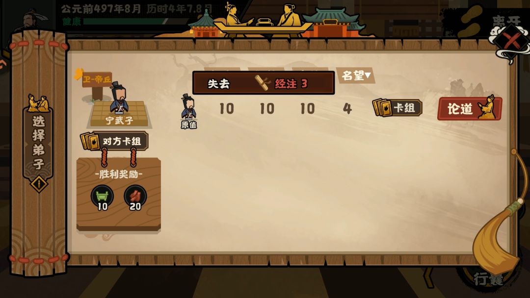 这里用钱币是为了方便计算,实际上最后你可以在肉脯阶段停下,也可以在经注阶段停下,就看你需要什么了。而且你在卫国和陈国之间来回走动本身也能刷新各势力的出仕需求。