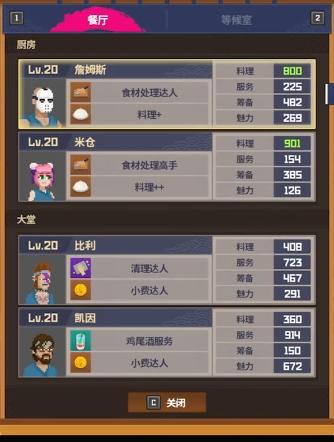 随着员工等级的提升,在其5级、10级、15级和20级均会可能提供新菜谱,想要升钻石店铺的则可以多拉拉员工等级