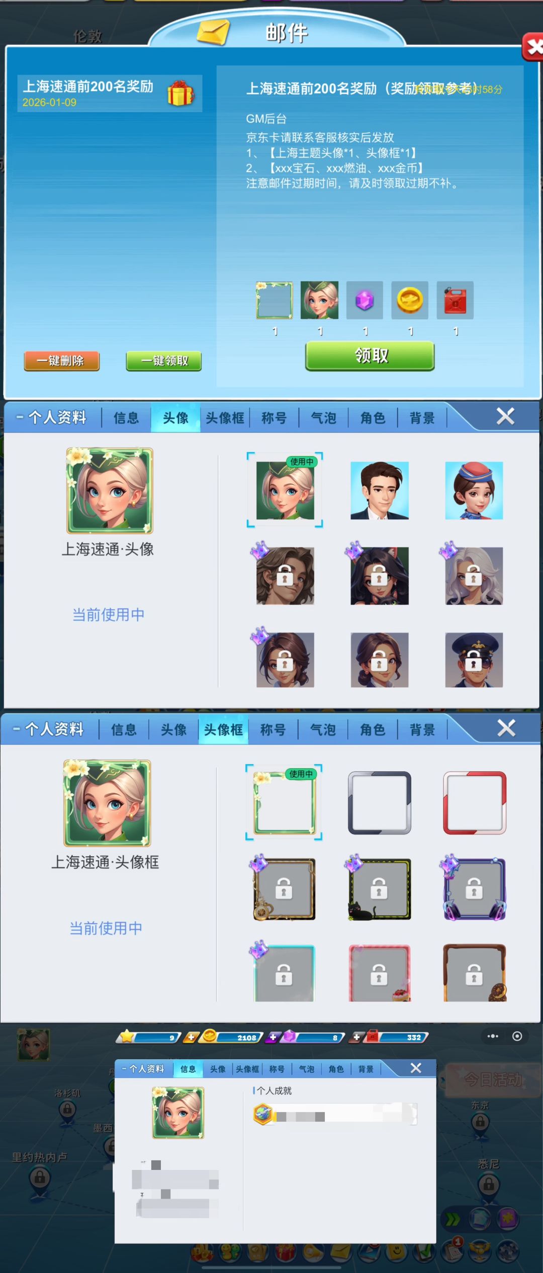 所有上榜玩家均可获得限量版上海主题头像*1、头像框*1