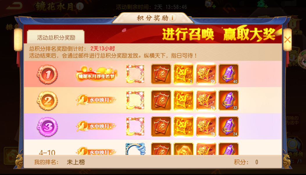 3、主公获得的灵镜碎片可以保留至下次镜花水月活动中使用。