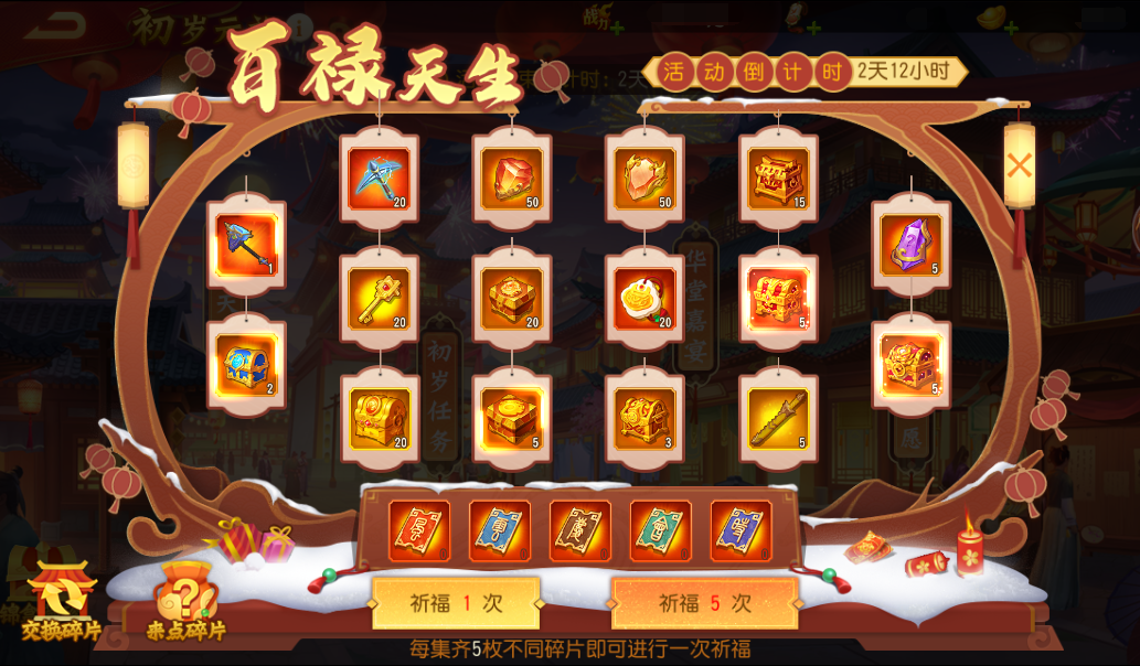 2、百禄碎片可通过完成活动任务,参与来点碎片和交换碎片获得。