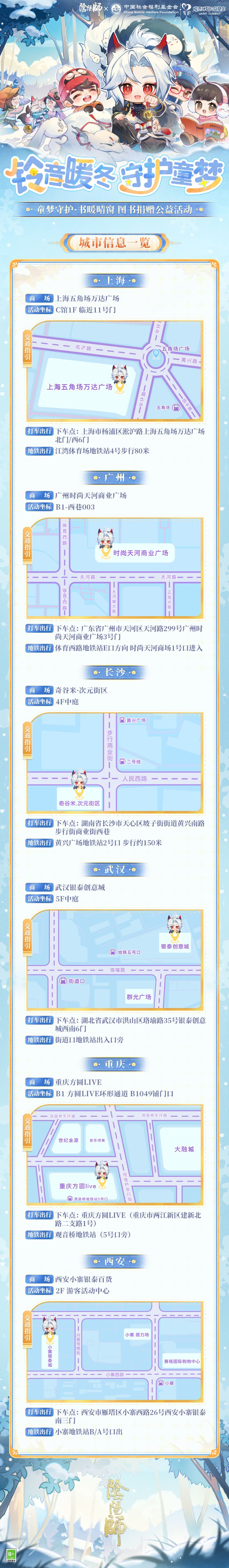上海·广州·长沙·武汉·重庆·西安,六城同启,期待阴阳师大人们携带好书亲临现场,让温暖在传递中延续~