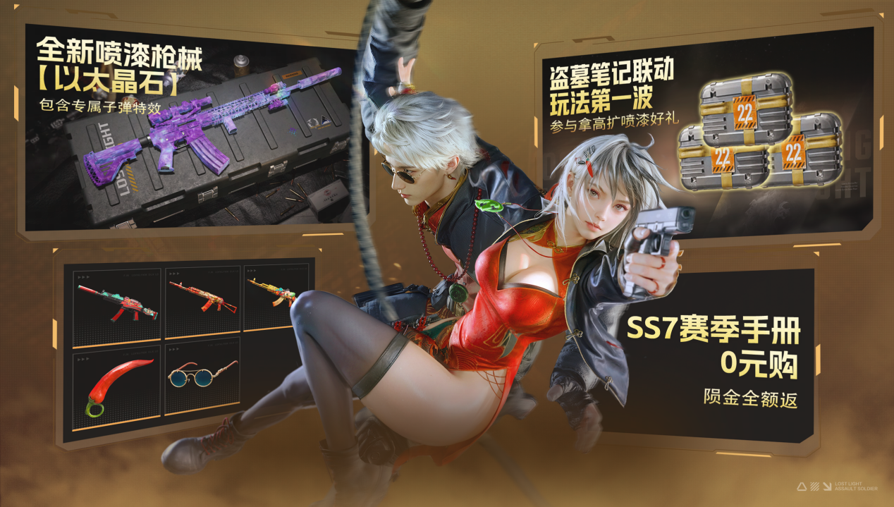 SS7福利升级来袭,SS7通行证0元购、全新限定赛季喷漆、盗墓笔记联动玩法活动第一波已开启,海量精彩活动,满满福利全盘接收!!