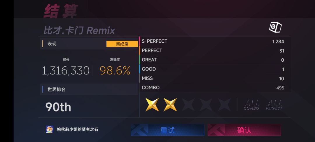 虽然我底力也很菜(后面的魔王,一些高难曲,还有带长交互、子弹多、双押多的谱子基本只能打nm),但是打两边的时候经常手偏一点就miss了,那些明明能跟上节奏,结果因为定位没打上的,稍微有点绝望呢