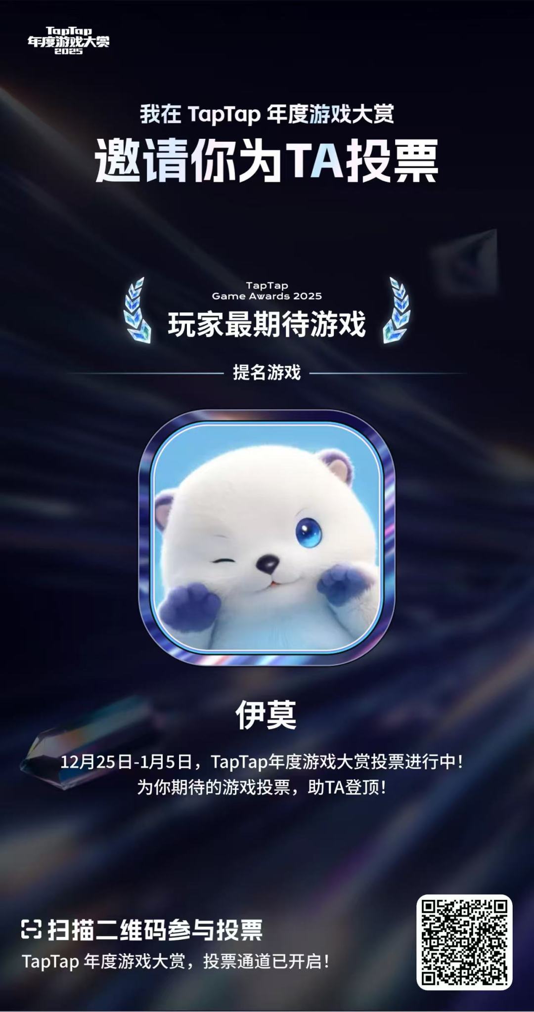 2025 TapTap年度游戏大赏「玩家最期待游戏」评选进行中!快来为伊莫投票吧!