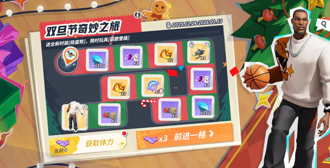 每日登录、参与比赛都能赚取体力,消耗体力解锁包括钻石、巨星天赋卡自选包、全新时装[捣蛋熊]、限时玩具[驯鹿雪橇]等多种好礼。