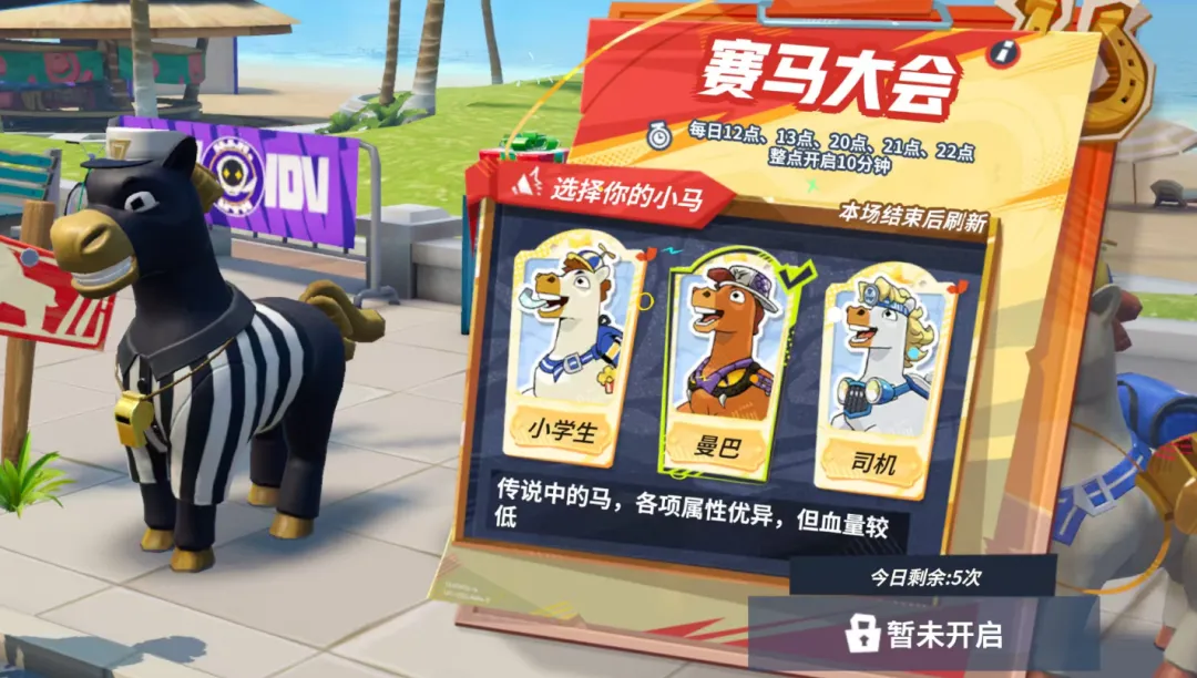 请选择你的小马!每天中午12点13点和晚上20点21点22点整点街球广场开启赛马大赛,街头狂飙,骑手们请就位。