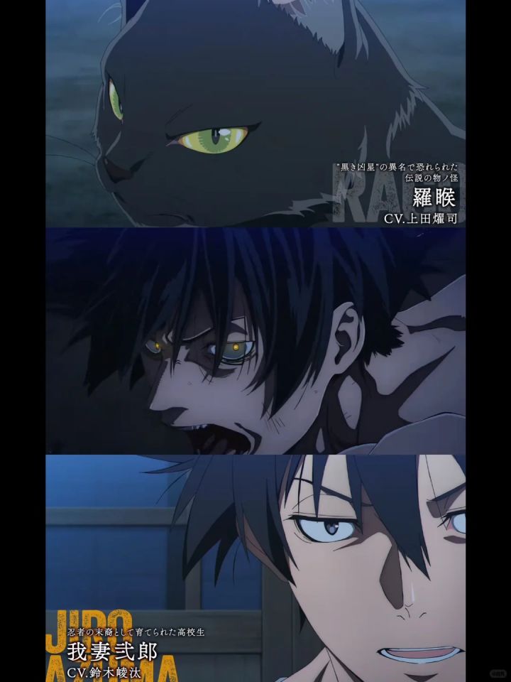 忍者后裔-我妻弍郎拥有与动物交谈的能力,某天偶遇了一只受伤的黑猫🐈⬛-罗睺,弍郎被追赶罗睺的敌人所伤,罗睺见状赋予弍郎超自然力量得以击败敌人!