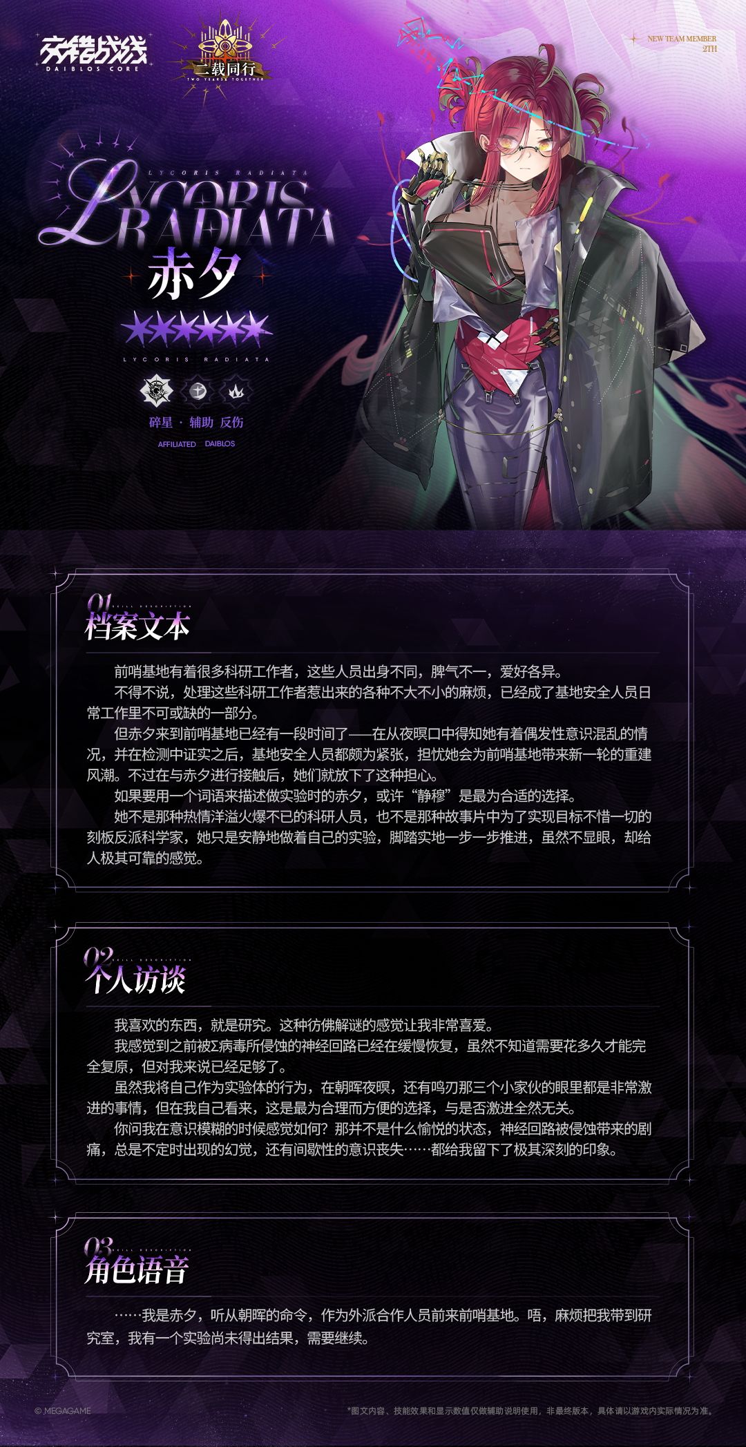 “……我是赤夕,听从朝晖的命令,作为外派合作人员前来前哨基地。唔,麻烦把我带到研究室,我有一个实验尚未得出结果,需要继续。”