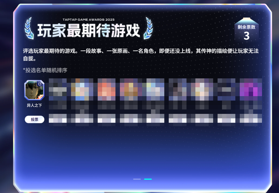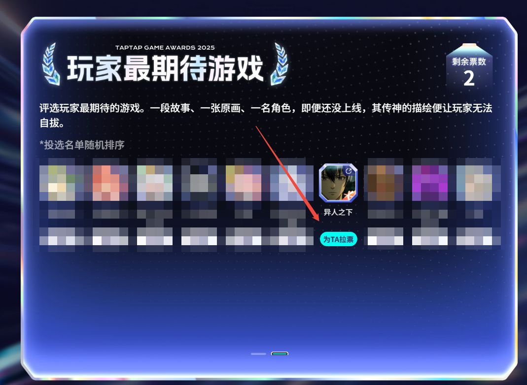 第一步:前往【玩家最期待游戏】分区,并选择异人之下进行投票;