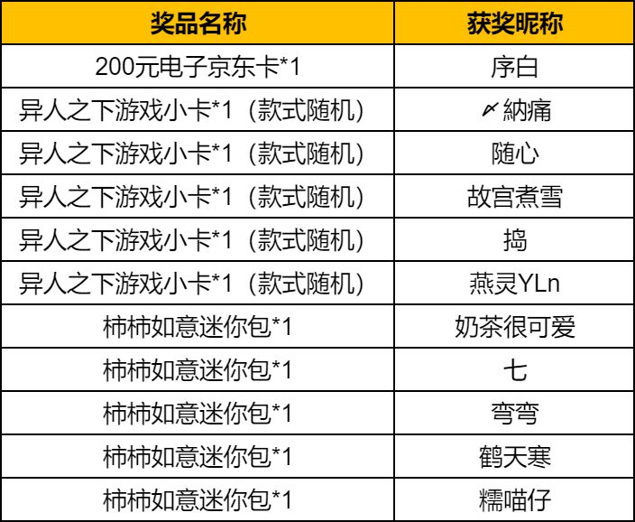 亲爱的玩家们,本次活动已经圆满结束啦,感谢大家的热情参与~现在就为大家公布本次活动的获奖名单~