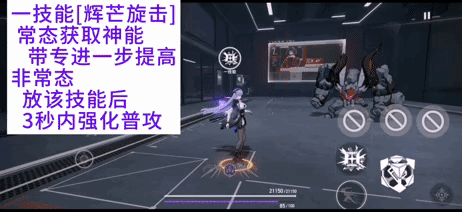 常态获取神能,非常态1+强普A(3秒内)获取[解构点]标记(中线神格).不闪避取消后摇。无抗打断效果