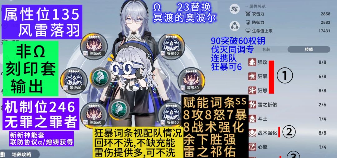 辅助-34号位右线都带无尽构筑加快开局奥义。⏸中线输出带以太/演化Ⅲ/涡电瓦解(抗性条神威专/诗蔻蒂等队友提供控制) ,静电异常(以太眩击)。单走中线输出带3无尽(遇到开局长动画)。右线有破甲,效果不如带以太/涡电