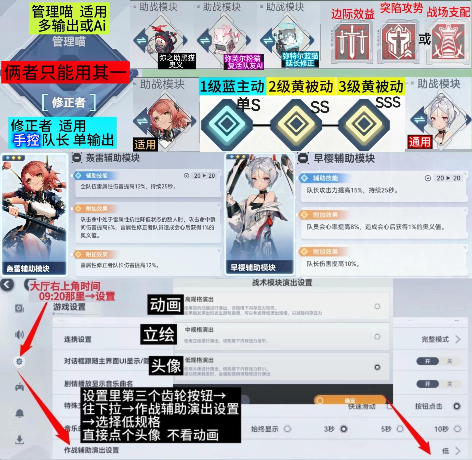- 手控单输出→角色模块(适用托尔/通用早樱3或2级)。Tips早樱模块提供队友8会心率