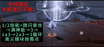 - 满神能开3后,1和2技能额外+1个点标记。放首段和末段3技能后,+下次1和2技能的瞬间攻击力40%, 自身独立+50%.放奥义再加自身对敌15%. 专中线再+自身123技能基础。加强自身输出能力,输出必选.▶️中线玩法→常态1/2/蹭闪/普攻→攒满神能开3进非常态→1a32a33循环完事