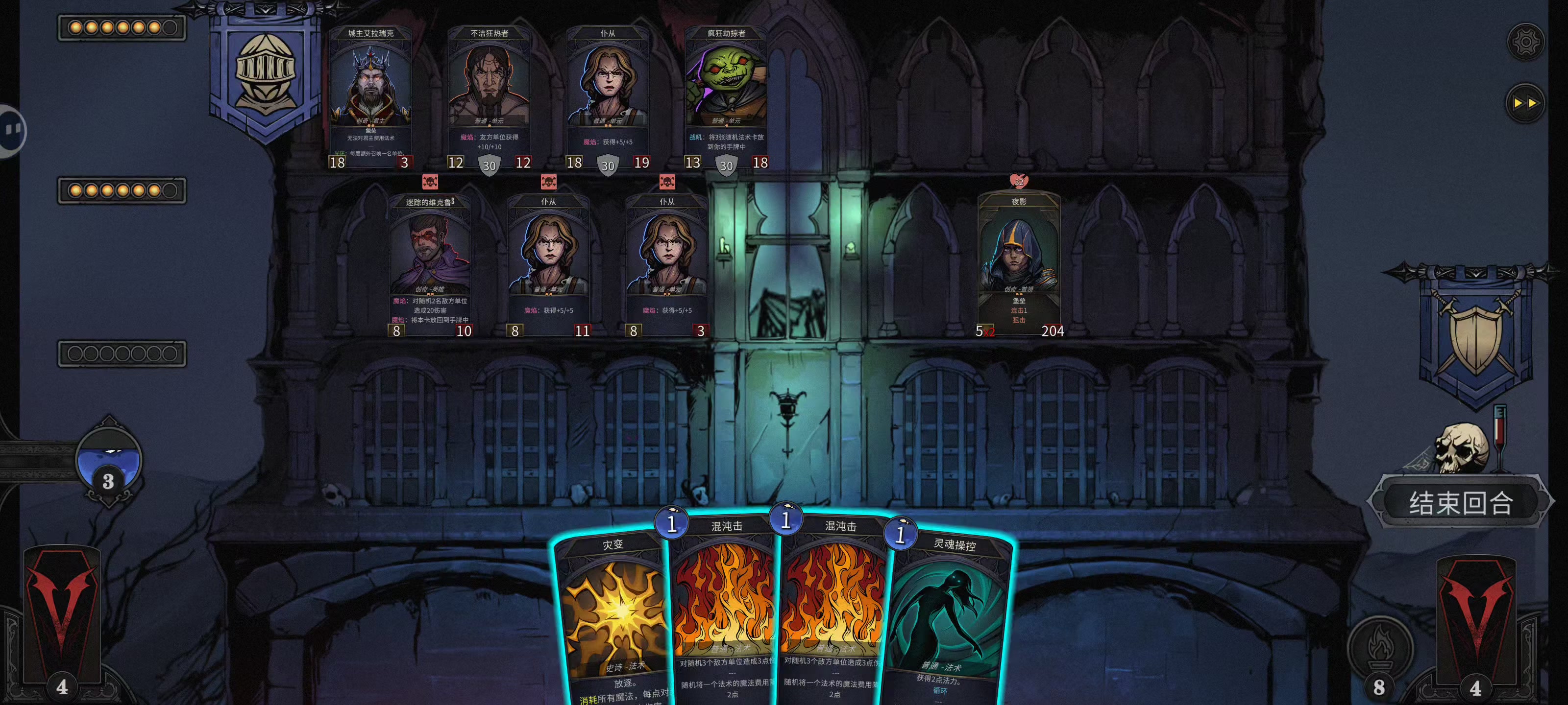 3.血量可以用木刃回血,没有木刃的时候可以通过树形态回血,但最好保证回合结束后能转回鹰形态,也可以通过卡精神(德鲁伊职业技能,人物立绘下面蓝色那个)到95时转成树形态,再用绽放就能回满血