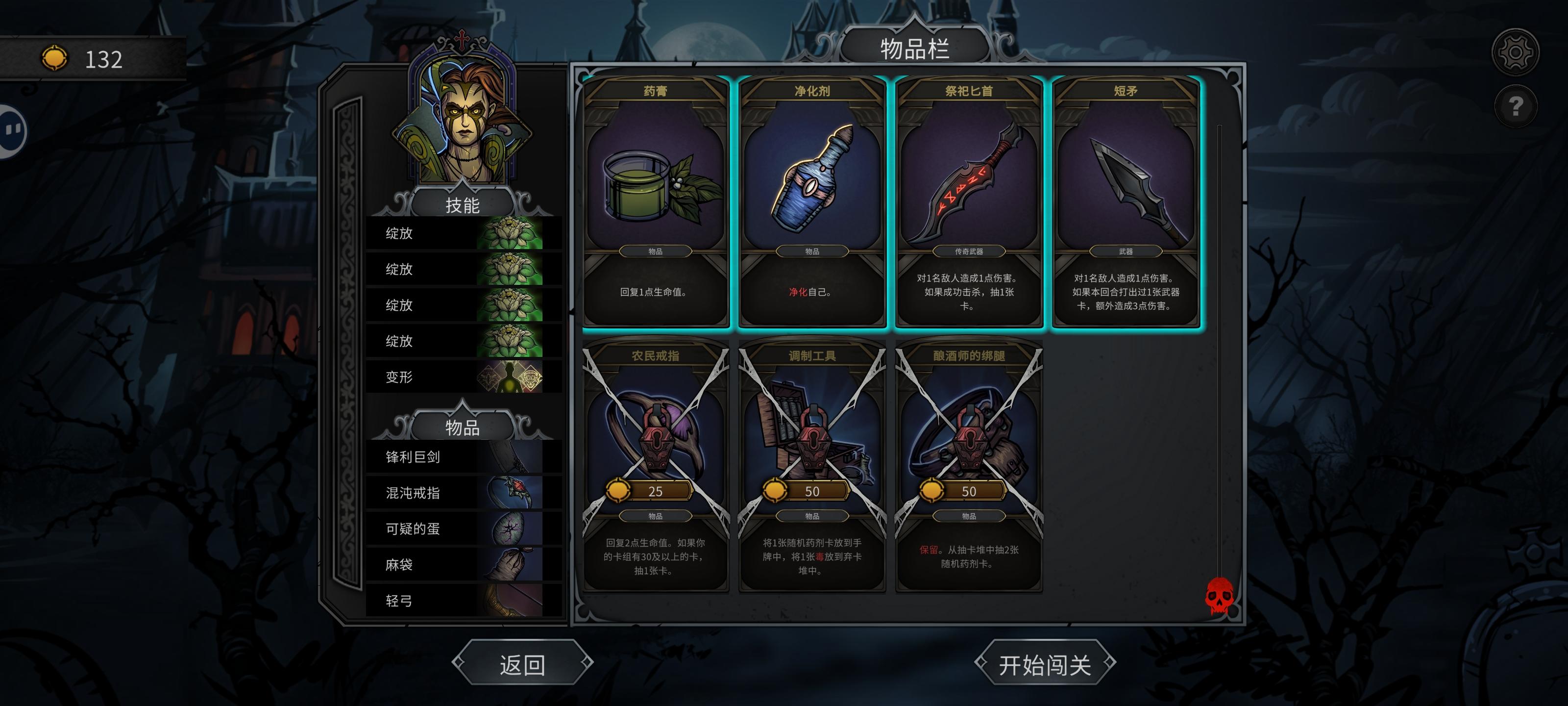 前期把一次性用品用了缩减牌库,奖励品可以拿力量法阵(抽三张),猴爪(极限压缩牌库),轻弓(两把就够了),一次性的格挡、加经验、复制,宝藏拿一张升级武器升完再拿