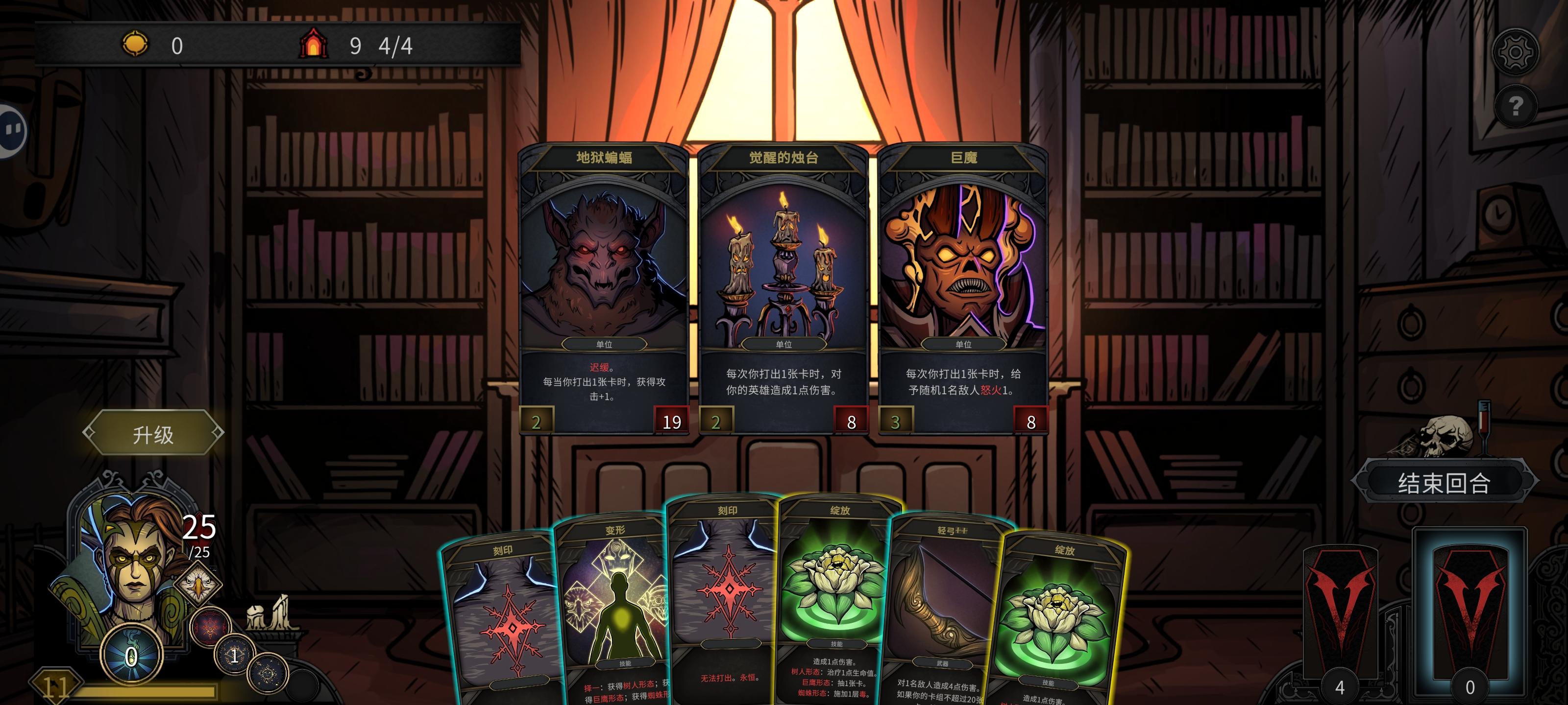 第一层比较简单,初始给的不洁狂热者非常强,最好增强三个随从,尽量能解决小鬼拿奖励。选卡时有关键法术选法术,没有就选前排。升级只选法术,拿关键升级,有放逐可以选放逐炎爆术。删卡也删炎爆术,有关键法术可以复制一下。