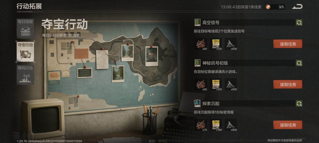 接取“高空信号”“探索沉船”等任务,完成后直接领取50-75废料/次+其他物资,是稳定的废料来源。