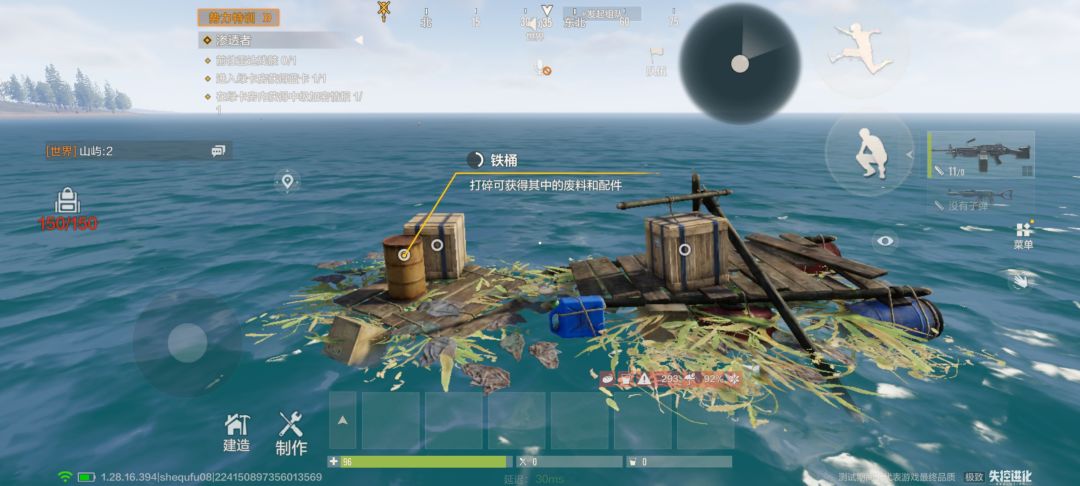 前期在海边都会随机刷新船,驶向画面的漂浮物铁桶、木箱、油桶击碎就可以获取废料。跑海也是最高效获取废料的方式。