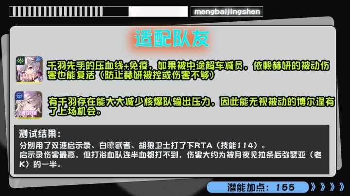 不知道带老虎会不会有点惊喜,我自己没能给千羽的老虎智壳。等过几天看看RTA高分大佬的思路对局看看有没有什么新用法吧。