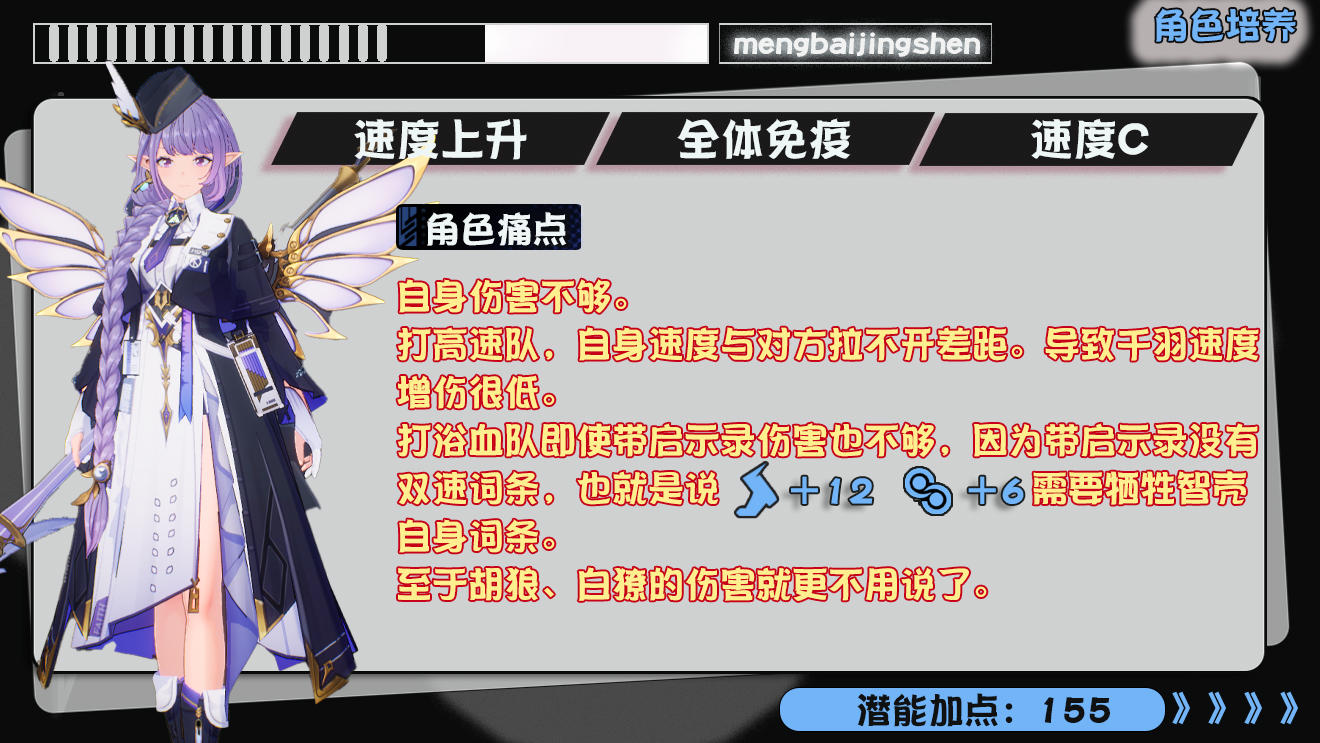 从功能上看,千羽还是不错的,毕竟有驱散和全体免疫还有加速。