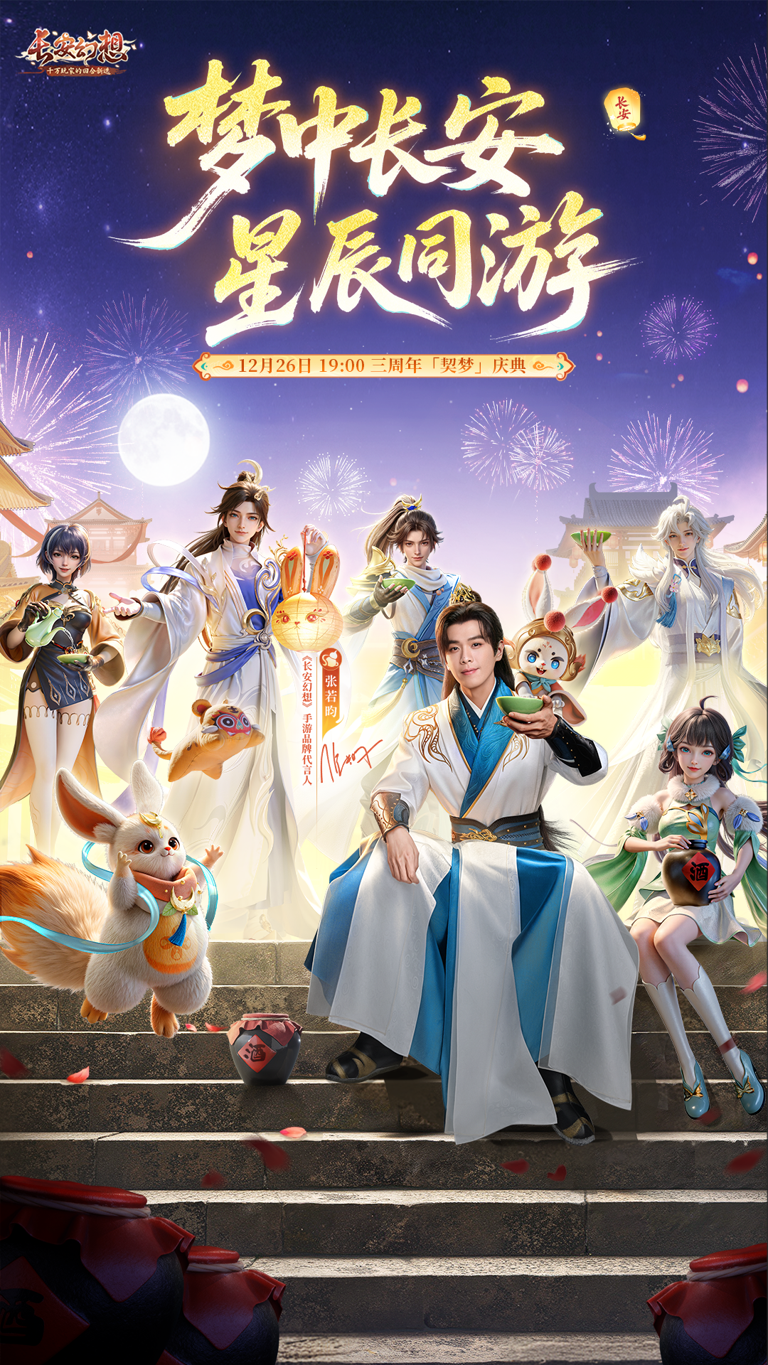 12月26日19:00,长安幻想手游品牌代言人张若昀,将携手研发天团,空降官方直播间!