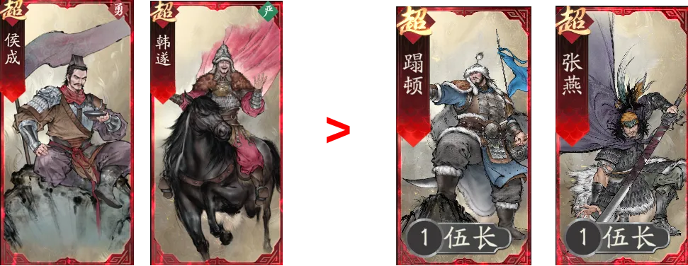 除此之外,高顺相对容易保持高血线,高血线有攻防双提升的蹋顿也非常契合高顺携带;高顺自身很容易获得增益效果,获得增益时获得提升攻防属性的张燕,也可考虑携带。