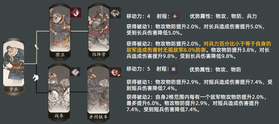 - 骑兵可以获得物攻10%附加到物防的冲锋效果;
