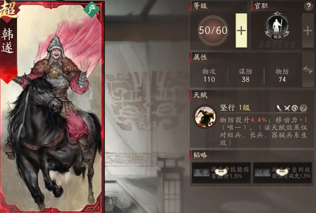 原本只是工具副将的韩遂,现在迎来了最适配的角色~韩遂能够帮助步兵线的高顺提升移动力,同时提升物防,两种效果都非常契合步兵高顺,也不抢其他副将。