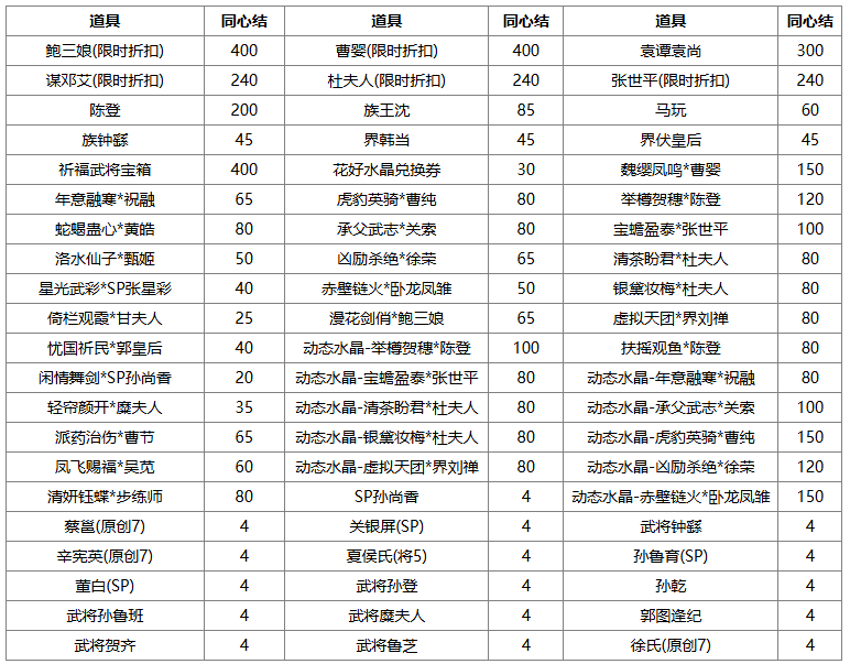 1、同心结可兑换奖励,若兑换奖励是在此次活动前已拥有的永久武将、皮肤、三国秀,则无法重复兑换。