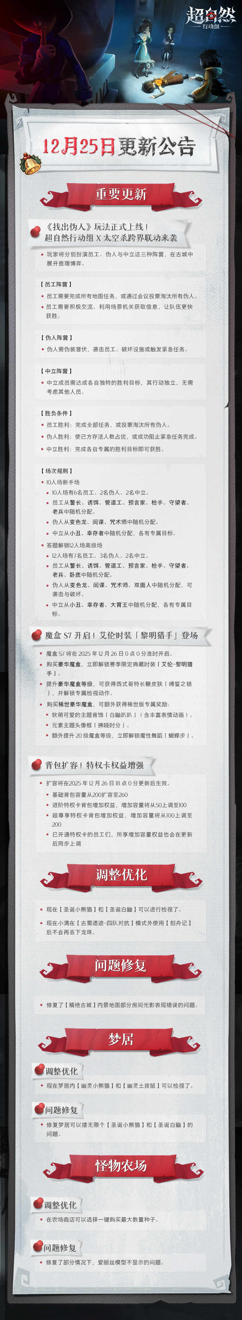 【新增修复】12月25日更新——《找出伪人》玩法上线!S7魔盒开启
