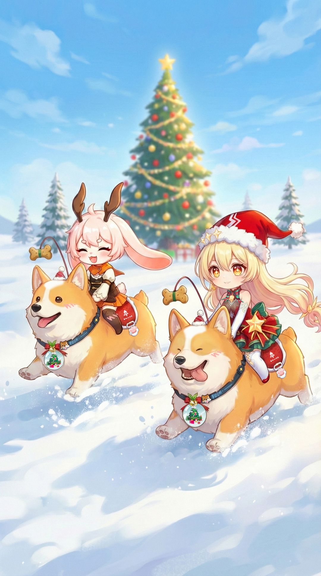 在这样温柔的节日里,小兔与桃乐丝正一同乘着可爱的载具「铃尾柯柯」,在雪地上欢快奔跑。