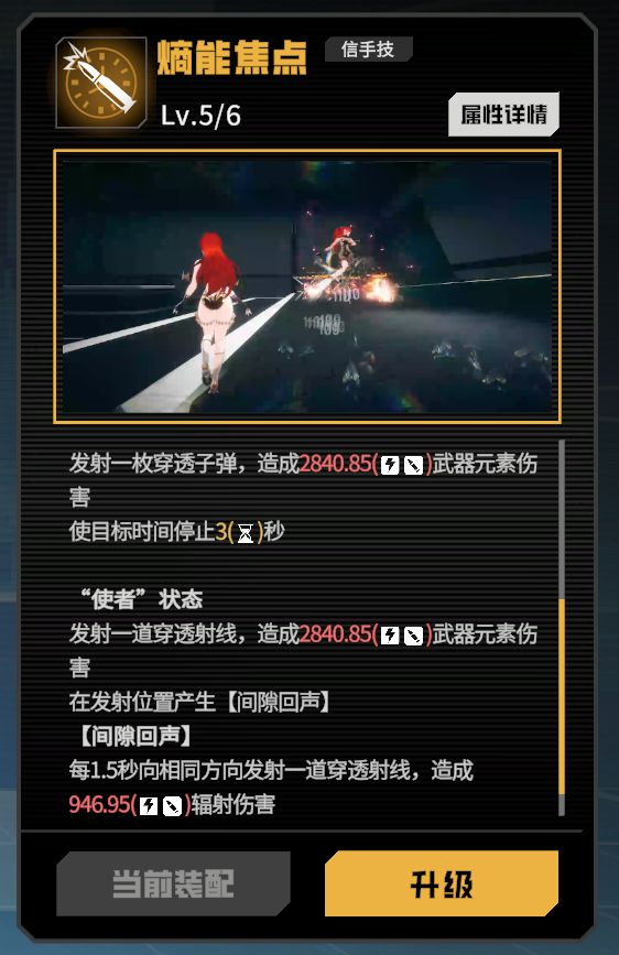 “使者”状态即开启破阵技后的状态,信手技1在开启破阵技前的技能并不重要,所以这里主要讲解开启破阵技能后状态;发射可以穿透的射线造成辐射伤害,并生成一个分身,持续发射光线直到破阵技能结束,并且每次射线命中敌人都能为敌人挂上一层辐射异常