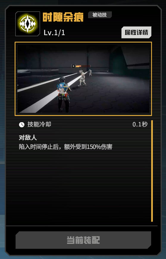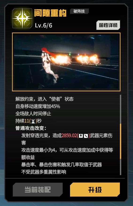 让全场的敌人陷入时停,同时增加自身的移动速度持续一定时间,并改变普通攻击为可以穿透敌人的光线